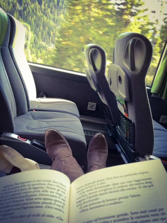 Per ora mi godo il viaggio, sono su un pullman semi vuoto in mezzo a bellissimi paesaggi svizzeri e con un libro in mano, che volere di più?