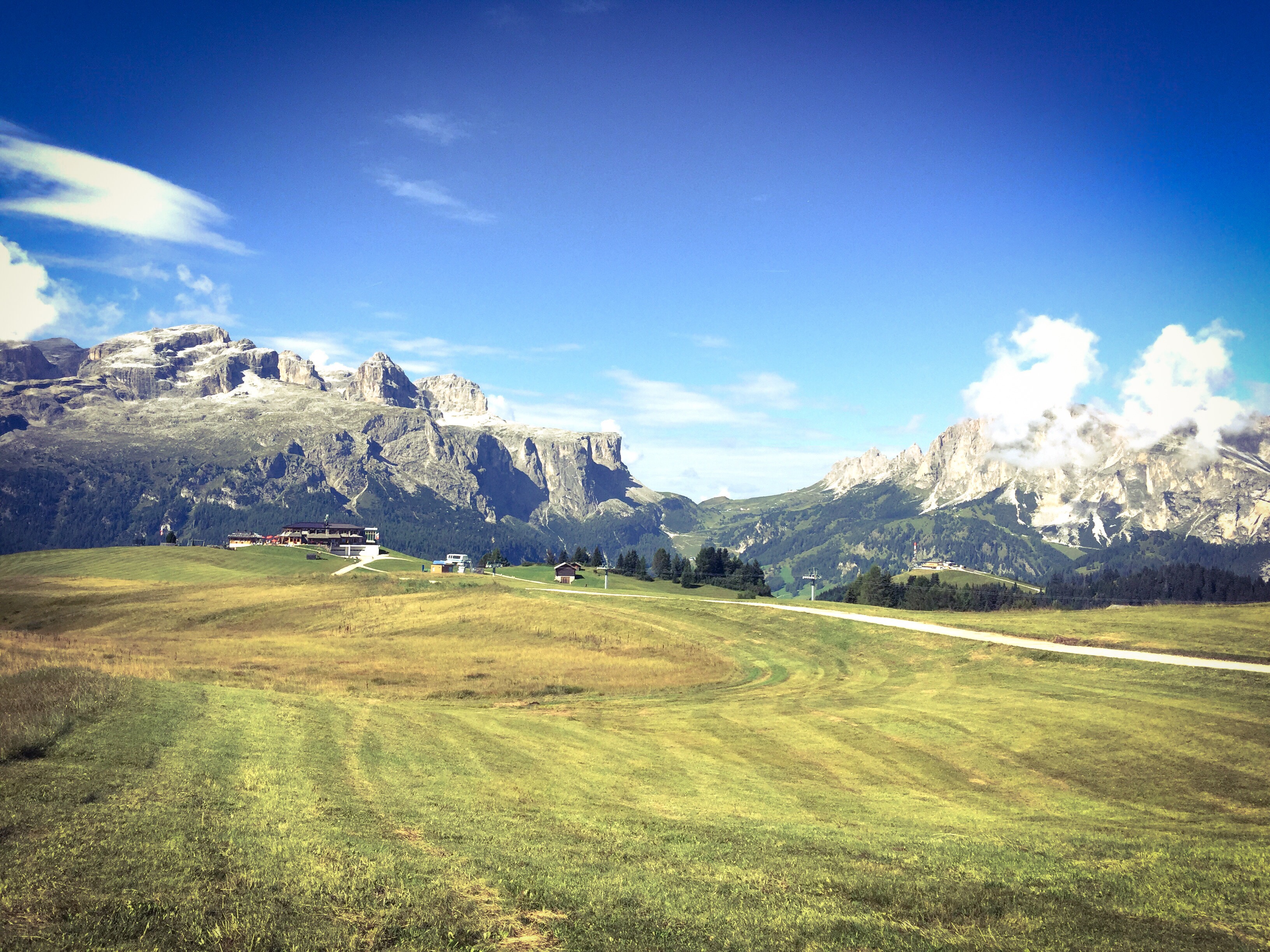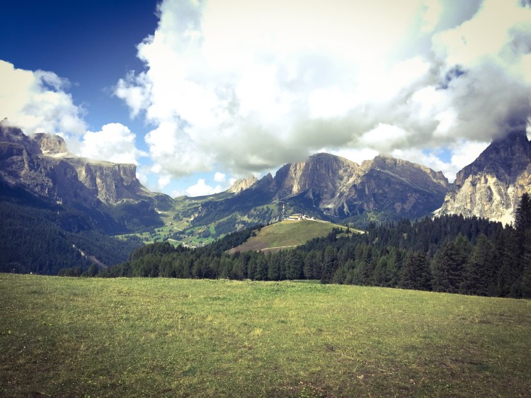 Decido quindi di raggiungere come tappa principale il rifugio Pralongià che si trova al centro dell’altopiano e che è un po’ il punto di riferimento per successivi itinerari. Per arrivarci da Corvara ci vogliono circa un paio d’ore, passando sempre da Col Alt e Piz Arlara che ho già visto ieri, e devo dire che il tragitto offre paesaggi davvero mozzafiato! Non si tratta infatti di passaggi alpini abbarbicati e ripidi ma di sentieri che salgono lenti, in alcuni punti in po’ più ripidi in effetti, e che ti portano a camminare in mezzo a prati immensi che sembrano dipinti e che, essendo ad oltre 2000 metri di altezza, ti riservano degli scorci che fanno spaziare lo sguardo per chilometri!