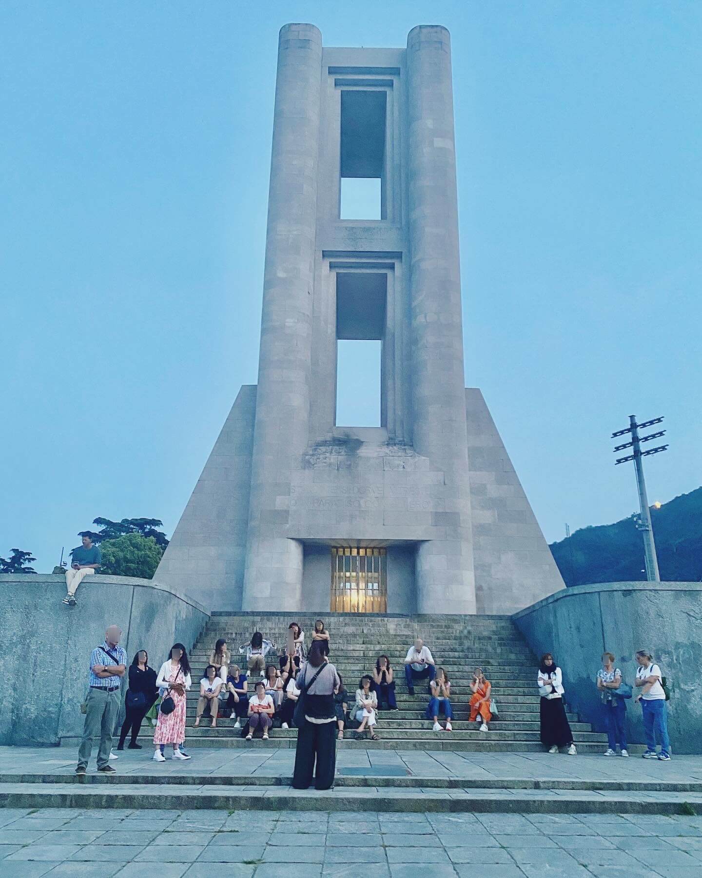 Il punto di ritrovo è stato allo stadio Sinigaglia. Oltretutto da tifosa non posso nascondere l’entusiasmo per il Como in serie A, ma questo è un altro argomento. Con la guida ci siamo spostati per la prima tappa al Monumento ai caduti che affaccia sul lago. La costruzione è molto particolare ed insolita, è infatti un’imponente torre alta circa 30 mt. La sua architettura è stata ispirata da uno schizzo di Antonio Sant’Elia, architetto futurista comasco della fine del diciannovesimo secolo.