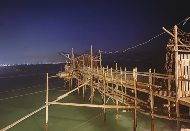 Tra i simboli di Termoli c’è il Trabocco Celestino. Queste casette di legno su palafitte sono tipiche delle coste dell’Abruzzo e del Molise. Sono nate come strutture per la pesca e molte, soprattutto sulle coste dell’Abruzzo, sono state convertite a ristoranti. Questo trabucco è l’unico rimasto in Molise e fa parte a tutti gli effetti della scenografia di Termoli.